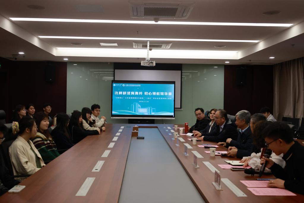 为完善育人服务体系,传递书香力量、守护学生心灵、拓宽学术视野,2026年4月16日上午,环境与生态学院“氿畔耕读育青衿,初心领航筑华章”系列育人活动在钱盘生楼A210隆重举行。萨拉托夫国立农业大学教授西玛科娃·伊娜·弗拉迪罗夫娜,江南大学关工委常务副主任娄国栋,宜兴食品与生物技术研究院院长、环境与生态学院关工委常务副主任张光生,宜兴食品与生物技术研究院总经理黄子洋,环境与生态学院党委书记杨延,党委副书记兼副院长胡娟出席活动。“一站式”社区学生党支部党员、学院学生代表共同参与。活动由李猛主持。