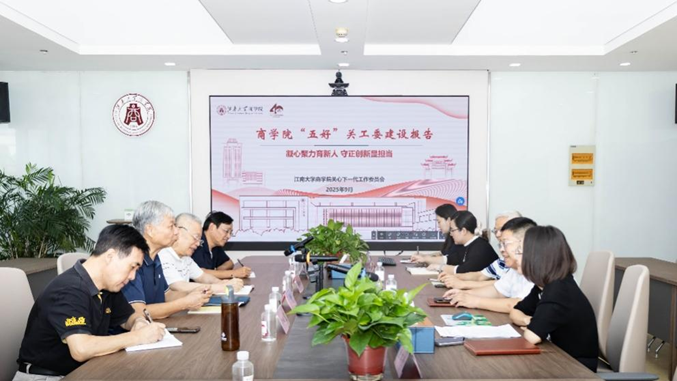 2025年9月19日,校关工委常务副主任娄国栋一行4人,到商学院开展学院“五好”关工委建设调研。学院党委书记刘长青出席座谈会并讲话,党委副书记、关工委主任孙小芳,关工委常务副主任冯群康,关工委委员唐红珍,学院分团委书记、关工委秘书王璁等同志参加调研座谈会。校关工委副秘书长吴骥一、衡延笃、黄正明等同志参加调研。