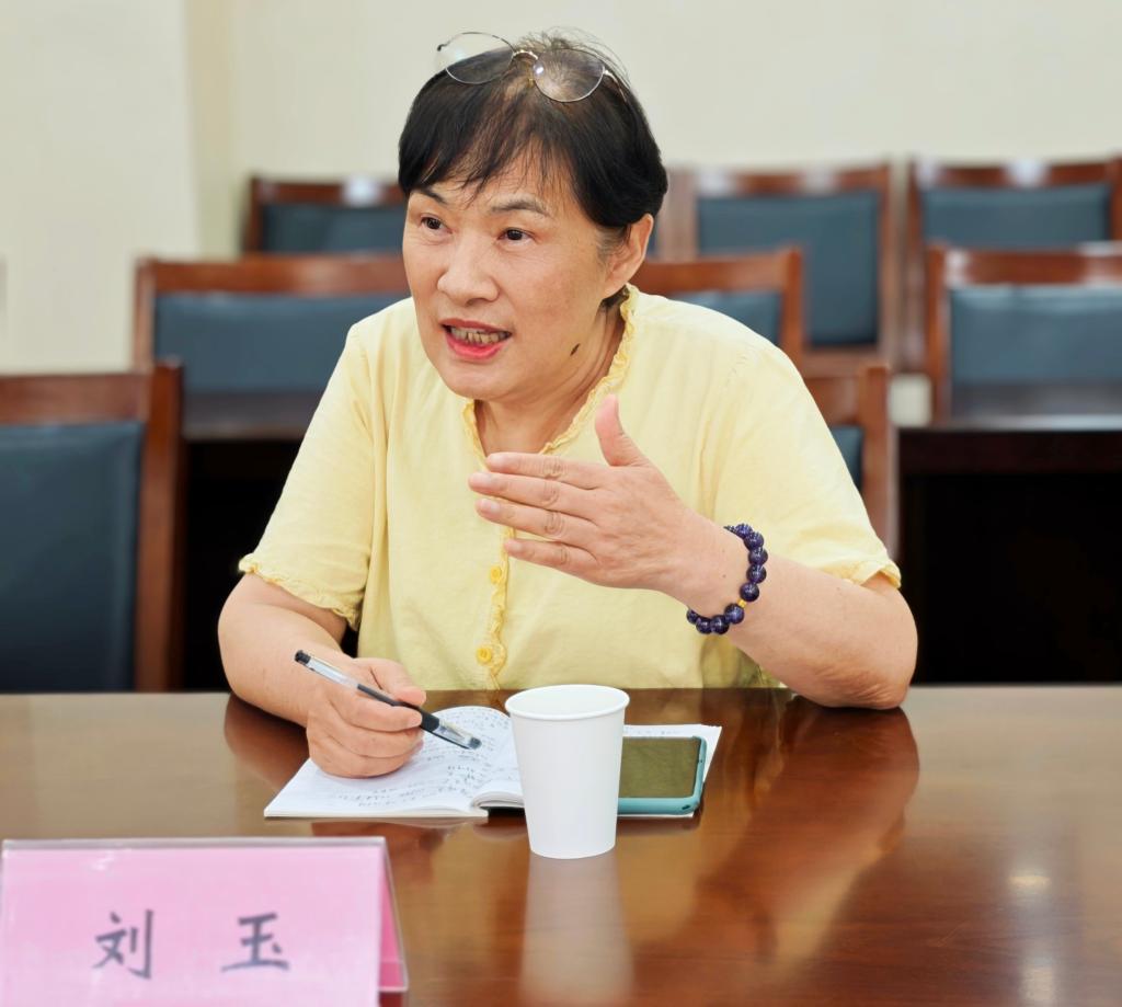 座谈交流环节,刘玉认为学院扎实推进“五好”关工委建设工作,开展了许多形式多样的活动。她谈了三点感受,一是学院党委高度重视关工委建设,工作上支持、条件上保障;二是充分发挥一批老教师的优势作用,通过青年教师座谈会等形式,发挥传帮带作用,助力青年教师成长;三是非常注重用好老校友资源,帮助学生树立正确的“三观”。她表示将在学院党委的领导下尽心尽力,为关心下一代工作做出贡献。曹维蓓在发言中,认为学院注重发挥老同志作用,并结合自己参与大学生发展党员、党团共建等方面活动的情况,介绍了为关心青年学生进步成长开展的有益工作。