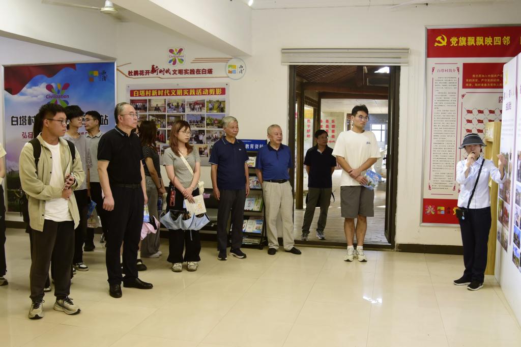 师生们到达白塔村之后,首先在导游的引导下,参观了党建展示馆、于伶纪念馆、宜人书院、生活行旅馆等展馆,实地了解了白塔村“生态立村、产业加力、旅游富民”的发展路径。据介绍,白塔村为老百姓打造了一个7.6平方公里的乡村旅游致富平台,让老百姓共同参与、共同致富。其发展实践为青年大学生提供了鲜活的乡村振兴样本。