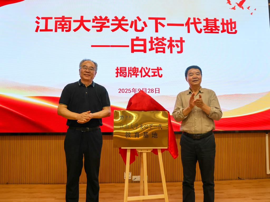 随后在村会议室,教育基地揭牌仪式正式举行,欧阳华与张光生共同为“江南大学关心下一代教育基地”揭幕,标志着该校地共建育人平台正式启用。
