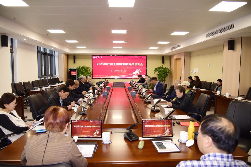 10月30日上午,2025年江南大学特邀报告员培训会议在江南大学江阴霞客湾校区三楼会议室召开,会议由张才兴主持。校区管理办公室主任王珏从数读校区、学科发展、建设意义、校区建设大事记、办学机制、阶段成果、校地合作等方面,较为全面地介绍了校区建设与运行情况。会上,张才兴宣读了《关于增补校关工委特邀报告员的通知》文件,娄国栋为新增补的5位特邀报告员颁发了聘书。培训中,娄国栋介绍了学校关工委近期取得的“全国关心下一代工作先进集体”等重要工作成果。他表示,成绩的取得得益于三个方面:一是学校党委对关工委工作的高度重视;二是拥有一支过硬的关工委“五老”骨干队伍;三是有一支乐于奉献的工作团队。同时,他还系统梳理并介绍了校关工委近期在“五好”关工委创建、基层关工委建设强化、学生委员工作推进、教育基地建设、青年教师导师系列讲座开展、融入“一站式”学生社区等方面的重点工作。